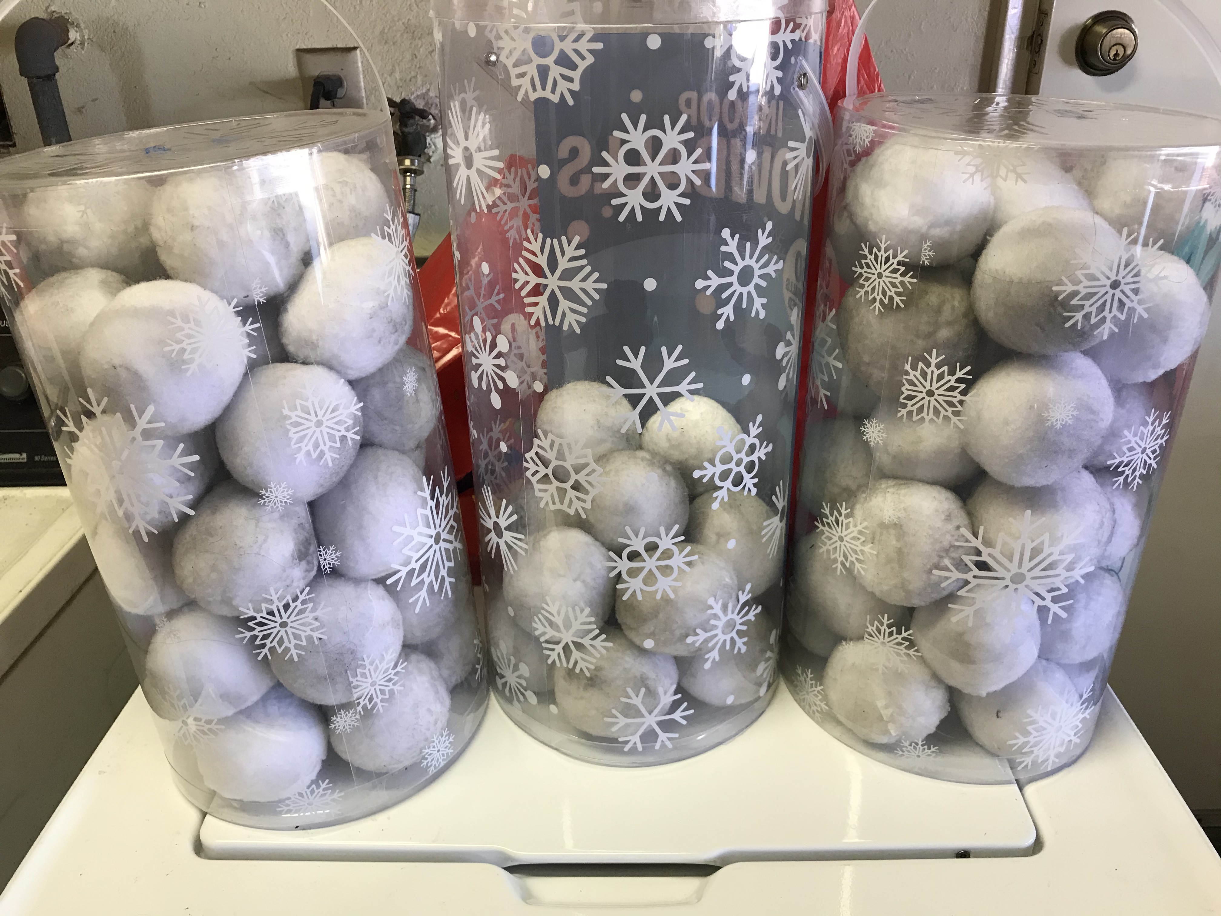 I wasn’t sure what to do with the snowballs. They were, of course, filthy. During the course of the night, I touched a few that were wet. Blech. I learned that a plastic cup of water had been knocked over and one beer glass, which couldn’t have been very full.