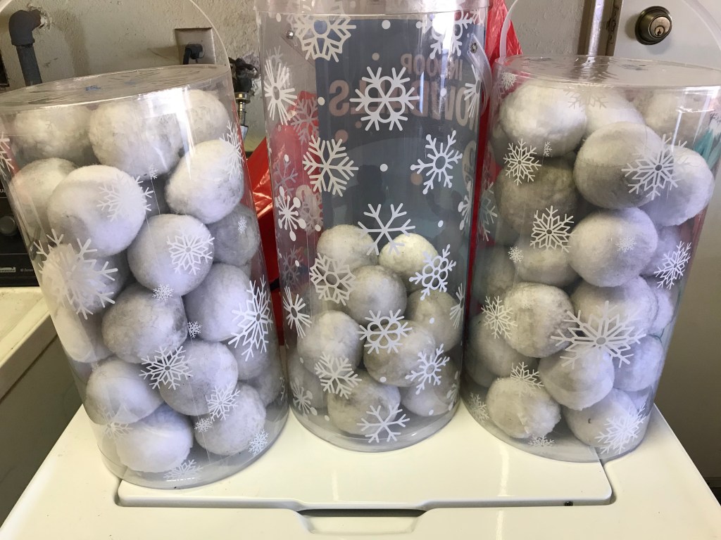 The morning after the fantastic band night, the bartender sent me a video of himself finding snowballs in the nooks and crannies of the bar. I told him Hubby and I had tried to collect them all, honest! But Bartender told me he cracked up every time he found one. Later he said he and his coworkers had a mini fight with them. 🙂 The gift that keeps on giving.