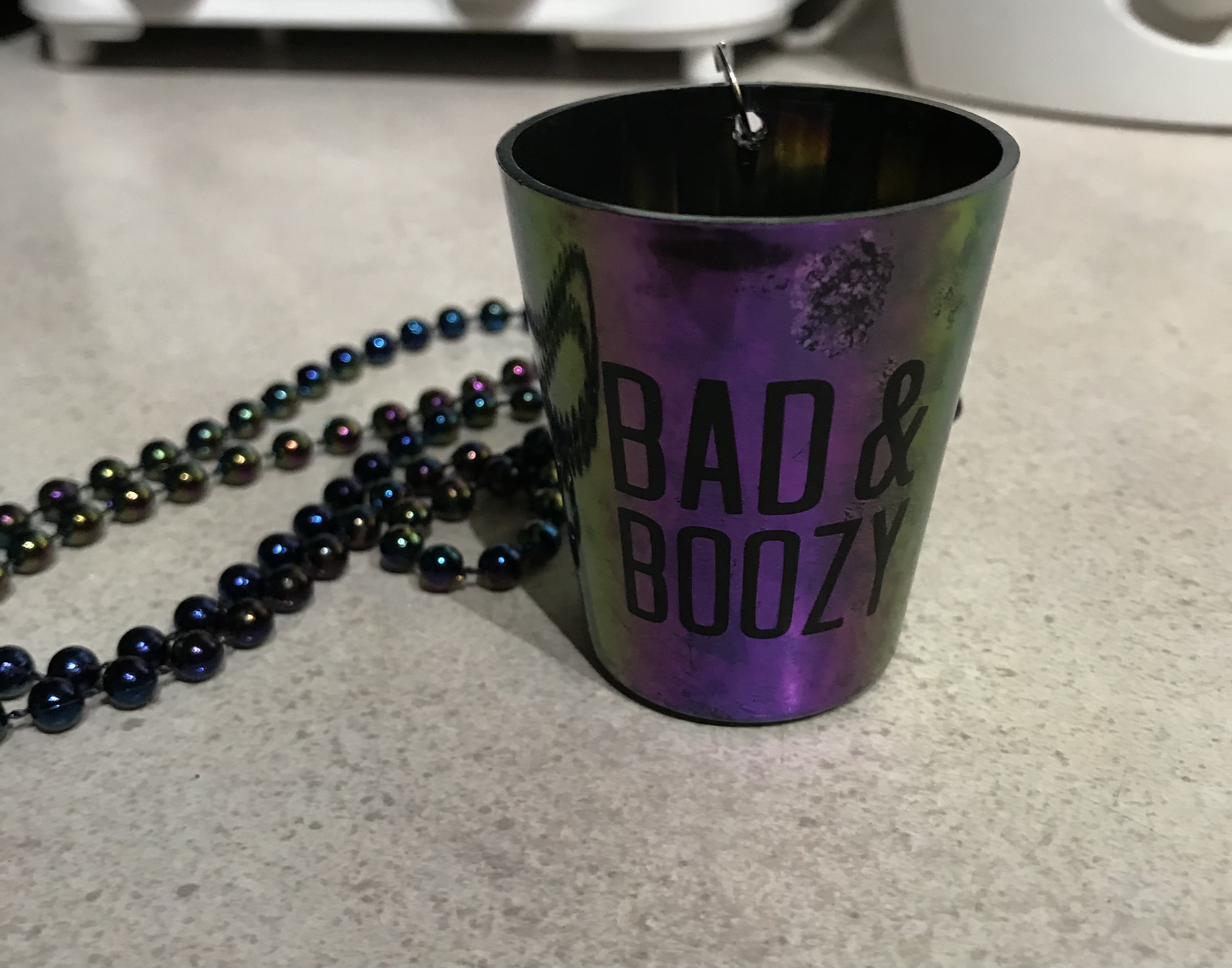 And that shot glass on Mardi Gras beads I was given? My daughter saw it the next morning and asked what it was.