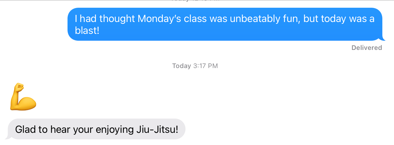 As it turns out, yes, it does, because the next class was largely devoted to leg sweeps, and who doesn’t love a good leg sweep??