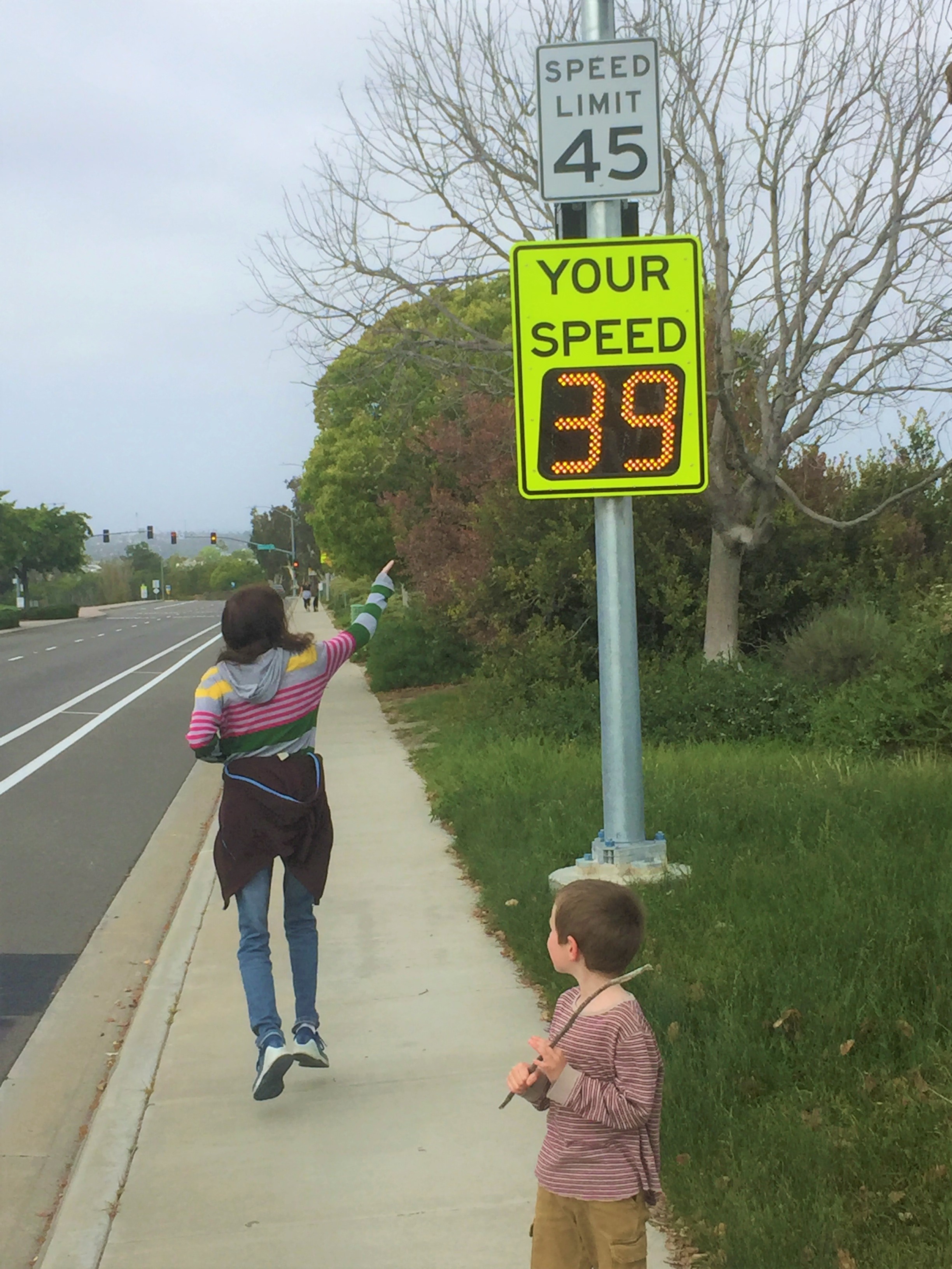 The speed sign is hilarious! As is your son who although I can’t see his face might be thinking “What is Mom doing THIS time?”