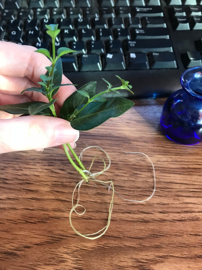 I’ll go with the photo of the little plant, Betsy, which keeps growing despite your implied efforts to kill it. A reflection of your rosy attitude toward your predicament. Puns amidst the pain! I admire that.