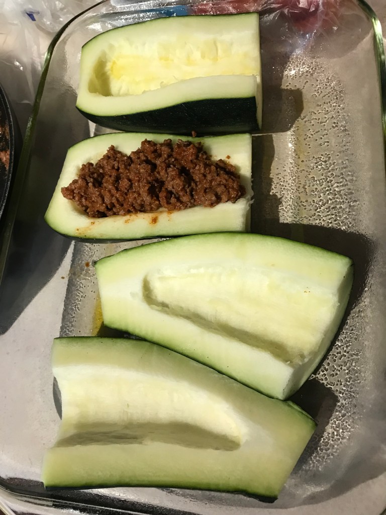 I’ve breaded and fried the zucchini in bacon grease, I’ve cubed it and cooked it with ground beef, I’ve sliced it and tossed it in the pan with chicken, we’ve done zucchini bread–Mrs. Sensei makes it with nuts, but the only nuts in this house are human, so we added chocolate chips–but then…