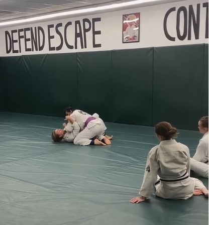 At the rolling portion after the regular part of class, Mrs. Inst. and I were doing the usual: Her–beating the snot out of me. Me–Trying to squirm out of whatever submission she’s lining up, with moderate success.