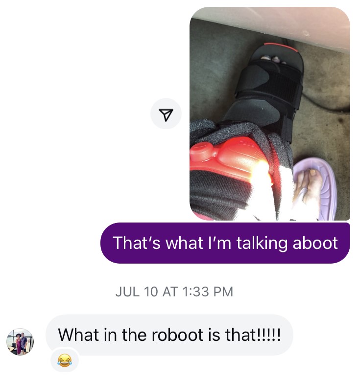 It took a few days, but that has worked. I’m now walking full time with the boot and a crutch to help me along. I can walk without a crutch, but I’m gimpy and slow-going.