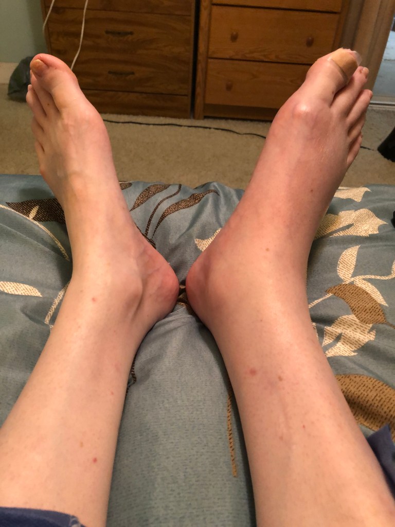 I also wondered if the swelling in my right foot and ankle was obvious in the picture. She assured me, “A blind man can see the swelling.”