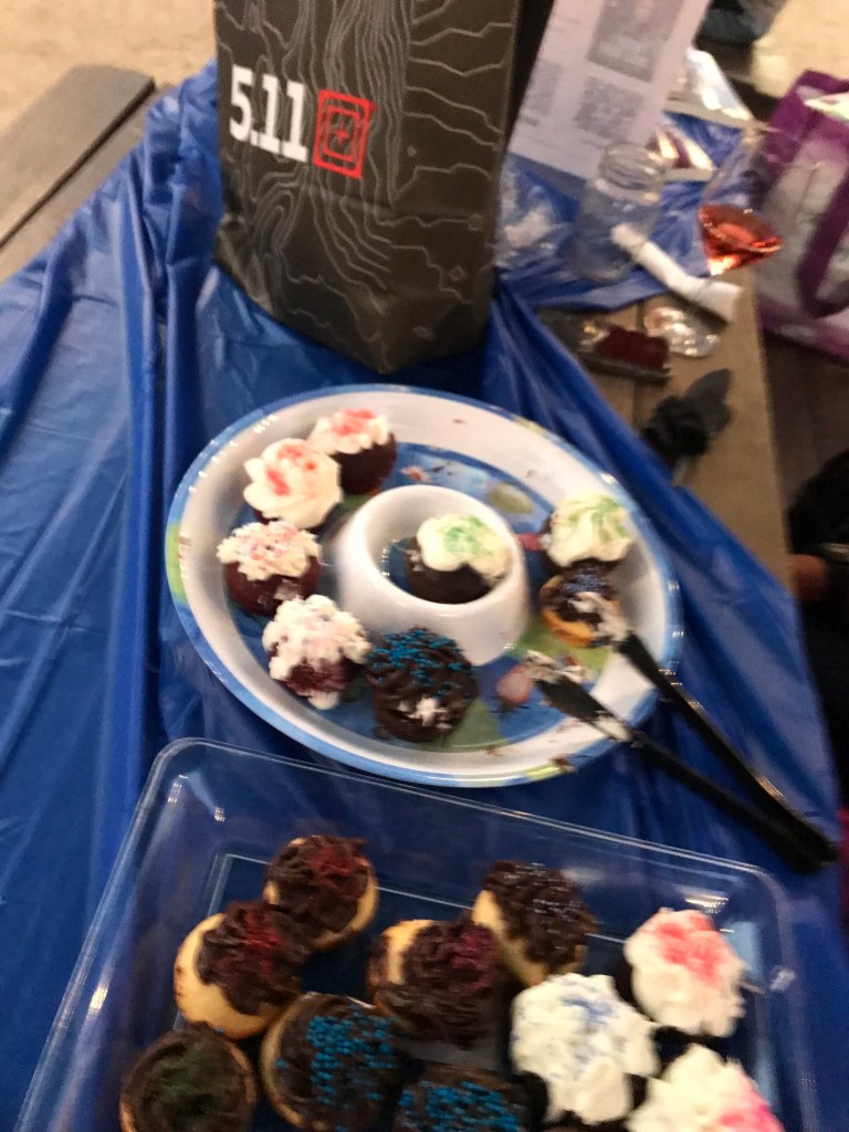 • I didn’t ask questions about where the frosting came from. It was just, “Go! Frosting! Go!” And I don’t know what was in it, either, but I didn’t much care for it. The chocolate frosting was better, but the vanilla cupcakes were better still. We also had red velvet with cream cheese frosting. We were TRYING to do right by our guests, which is largely why we didn’t attempt to make our own frosting. (We have in the past. Mixed results. Tasty but not fluffy.)