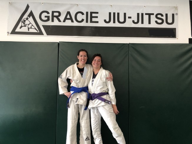 Without her asking, I stayed to be her demo partner for Combatives, super excited for us to kind of teach a class together. Instructor not being there, I was less shy about speaking up. I even offered the class a tip for falling safely.