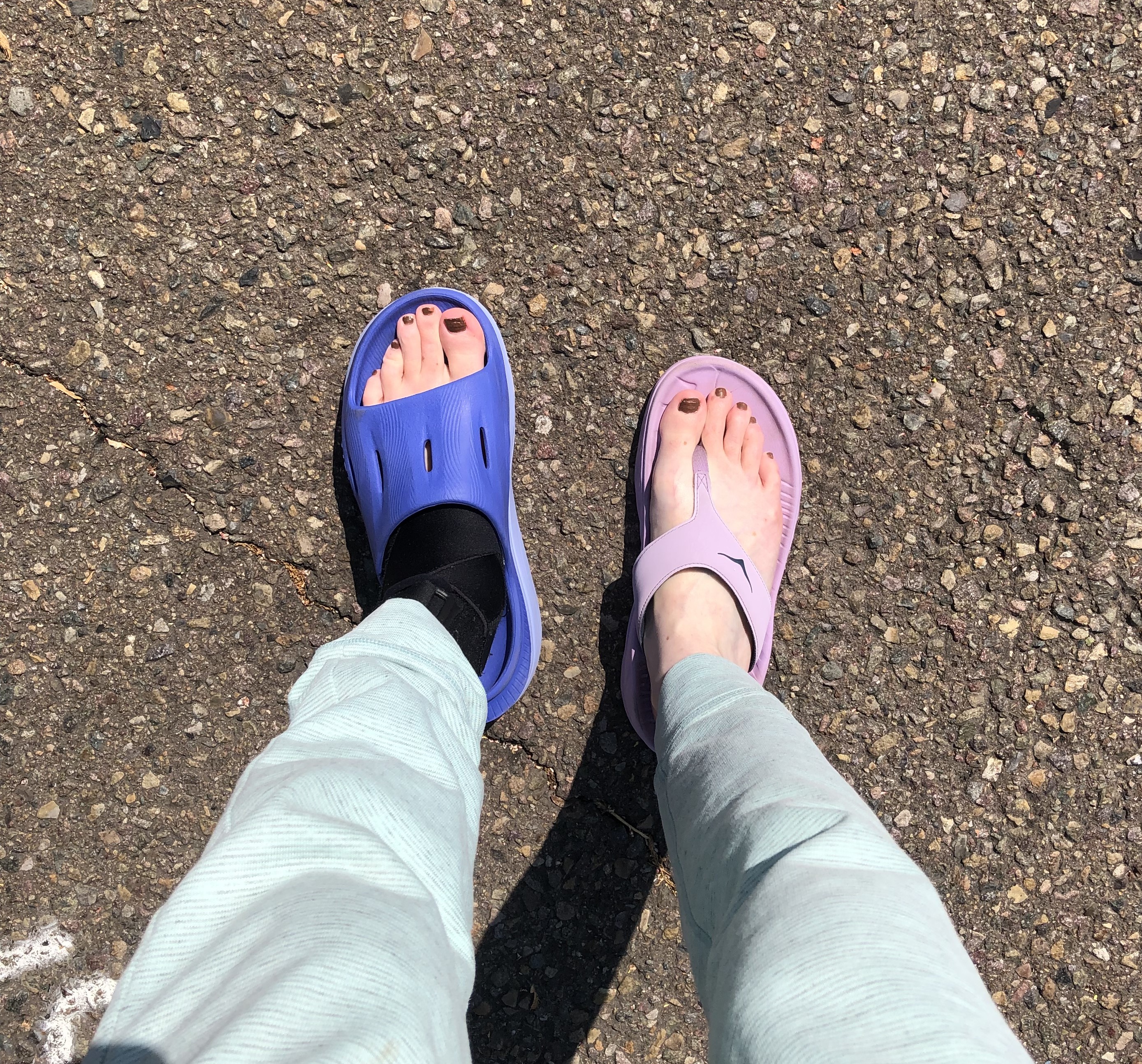 Wrapped ankle on left in a blue shoe. On the right, pink shoe. I took this when I stepped out of the car in the Walmart parking lot. Leave it to me to wear mismatched shoes. I laughed then thought, “Well, this is Walmart. I’ll fit right in.”